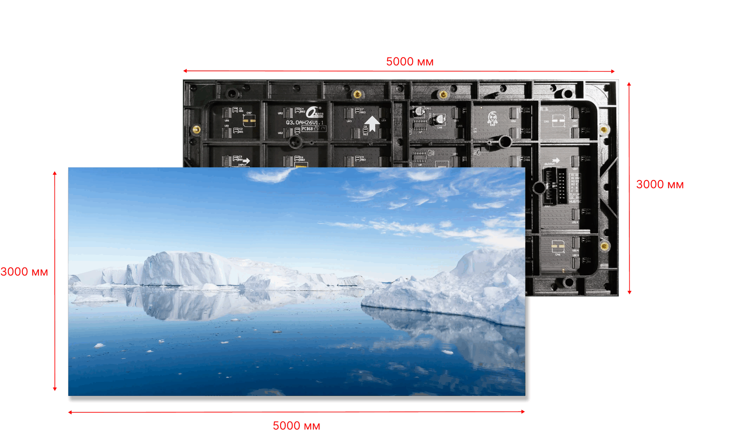 | Диагональ, дюйм | 3000 x 5000 мм |