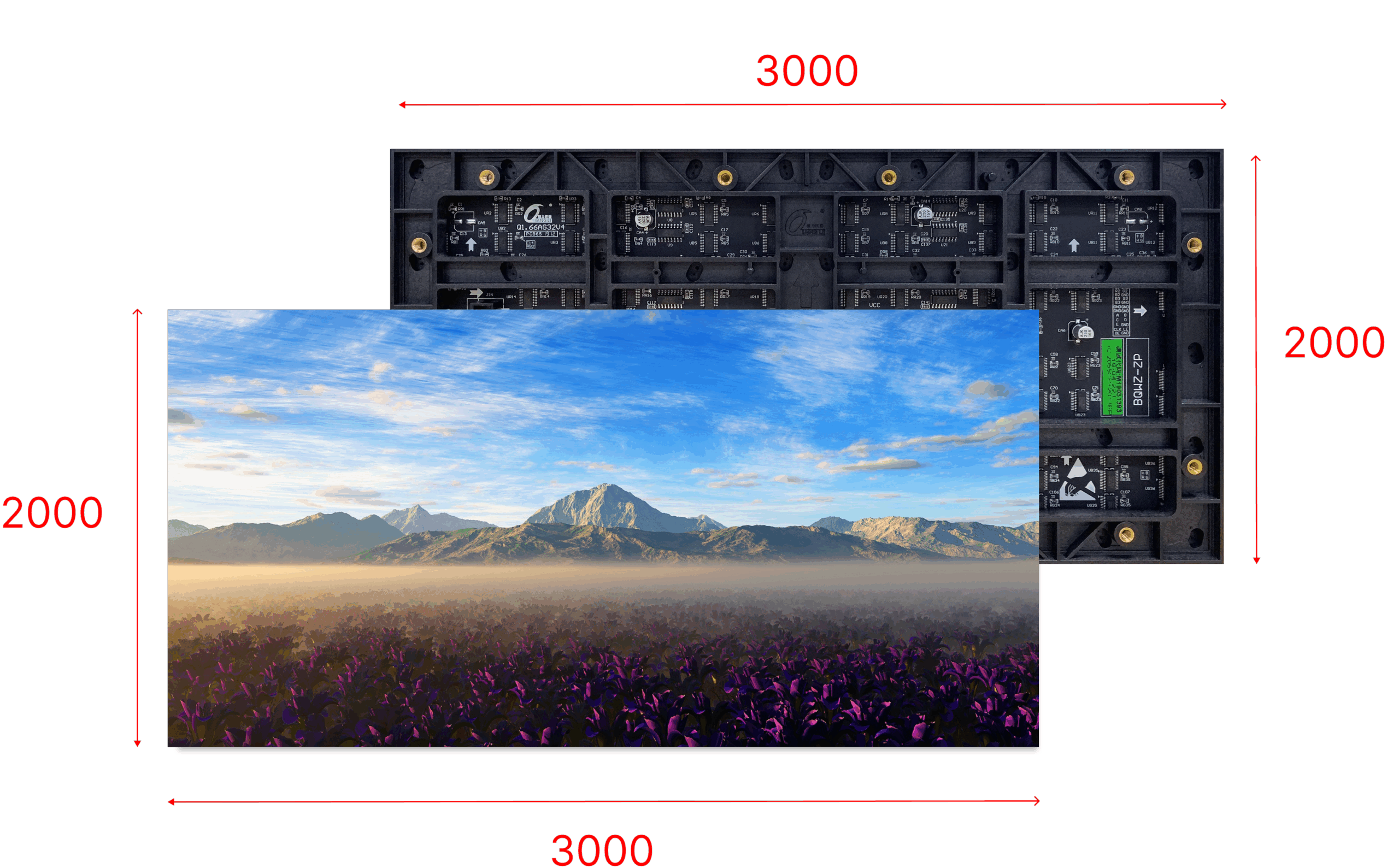 | Диагональ, дюйм | 2000 х 3000 мм |