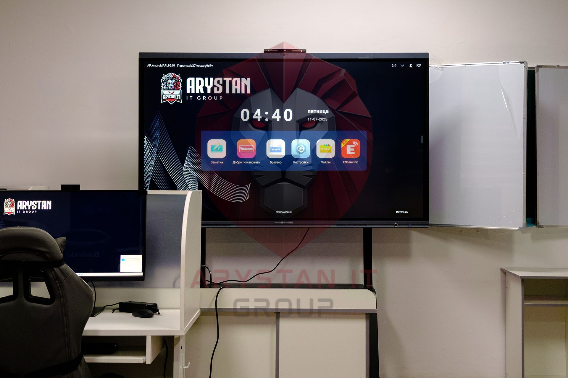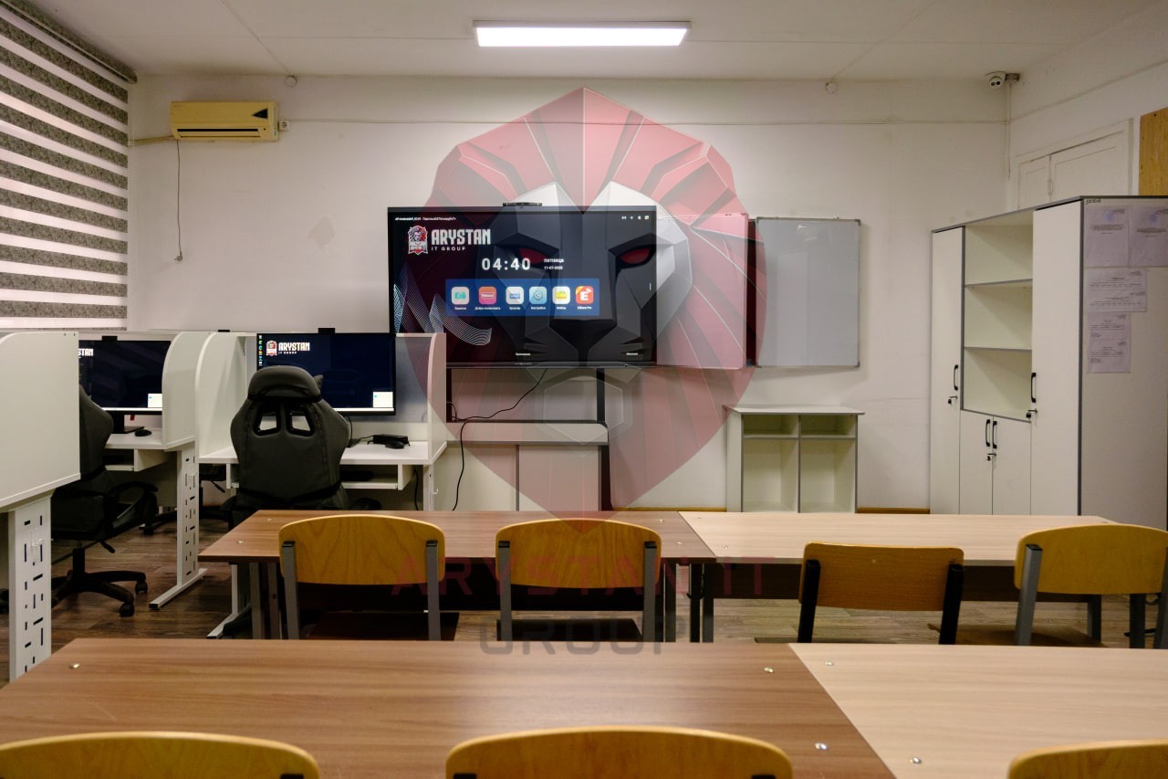 Основное оборудование кабинета: 🔹 Интерактивная панель с сенсорным управлением и OPS-компьютером 🔹 Мощные моноблоки (или персональные компьютеры) для учеников 🔹 Автоматизированное рабочее место учителя 🔹 Сетевое оборудование и лицензионное программное обеспечение 🔹 Эргономичная мебель и система освещения