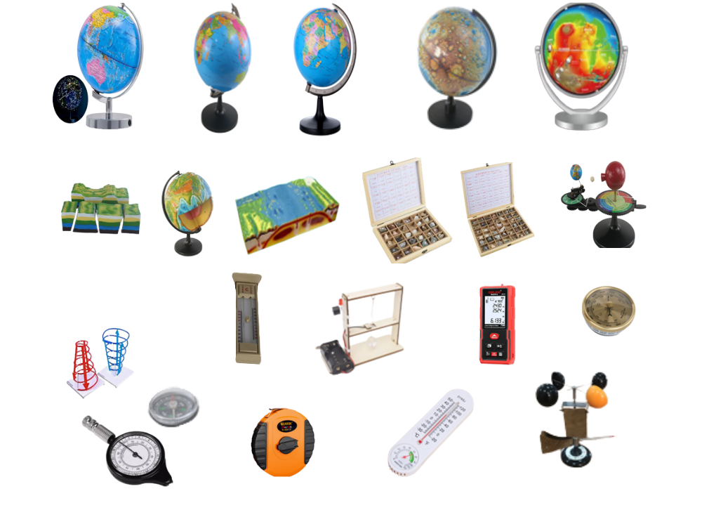 | Комплектация | 1. Глобус Звездного неба 320 миллиметр с подсветкой; 2. Глобус Земли политический 320 миллиметр; 3. Глобус Земли физический 150 миллиметр; 4. Глобус Луны 320 миллиметр; 5. Глобус Марса 320 миллиметр; 6. Модель по географии "Сдвиги и разломы земной коры"; 7. Модель по географии "Строение земли"; 8. Модель по географии "Строение рельефа морского дна"; 9. Модель "Солнце–Земля–Луна (теллурий)"; 10. Модель циклона и антициклона; 11. Коллекция "Минералы и горные породы"; 12. Коллекция "Полезные ископаемые"; 13. Барометр-анероид; 14. Гигрометр; 15. Дальномер электронный; 16. Компас школьный; 17. Курвиметр; 18. Рулетка; 19. Термометр с фиксацией максимального и минимального значений; 20. Модель сейсмографа; 21. Флюгер; |