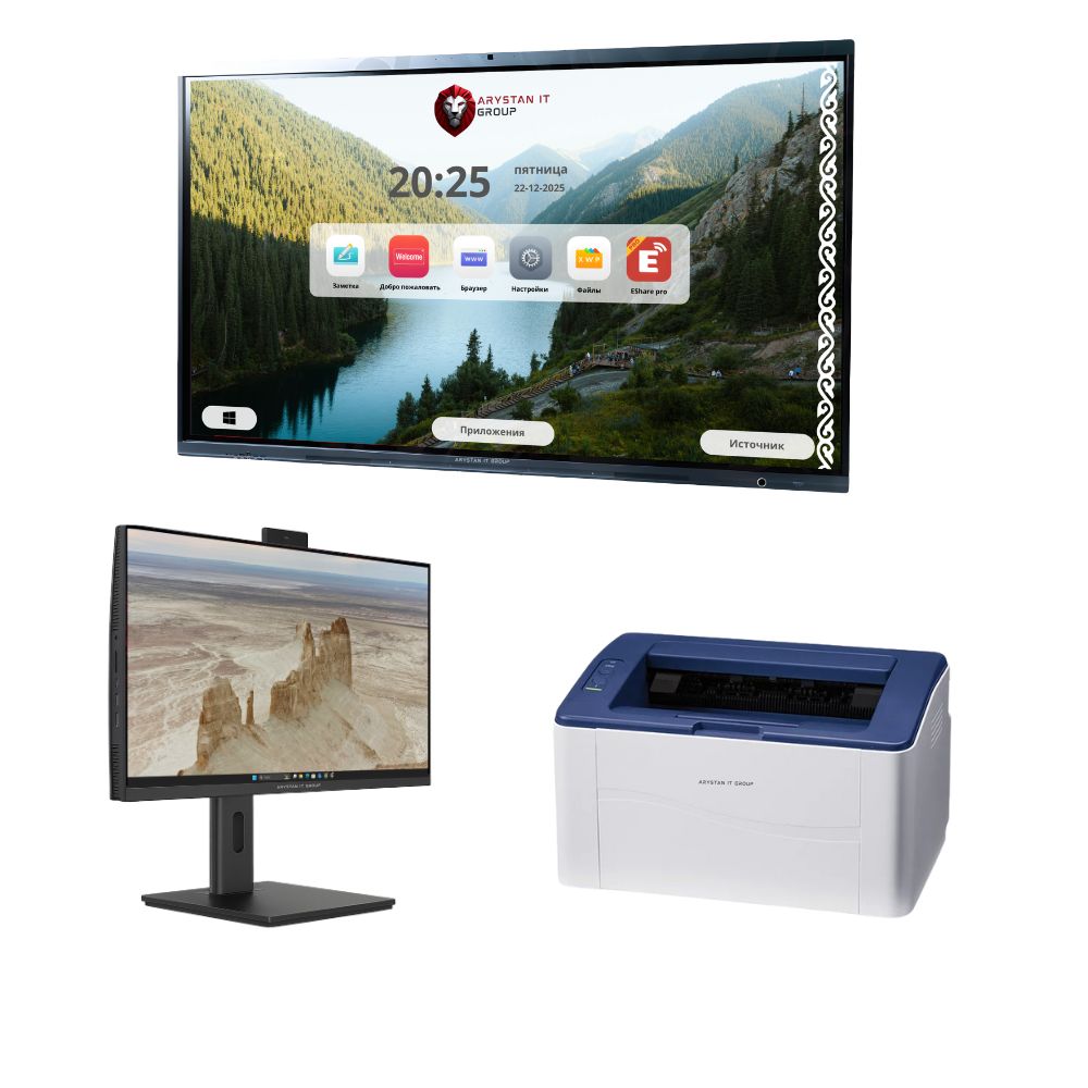 | Комплектация | Интерактивная панель 75 — 1 шт, Моноблок 24 — 1 шт, Принтер — 1 шт |