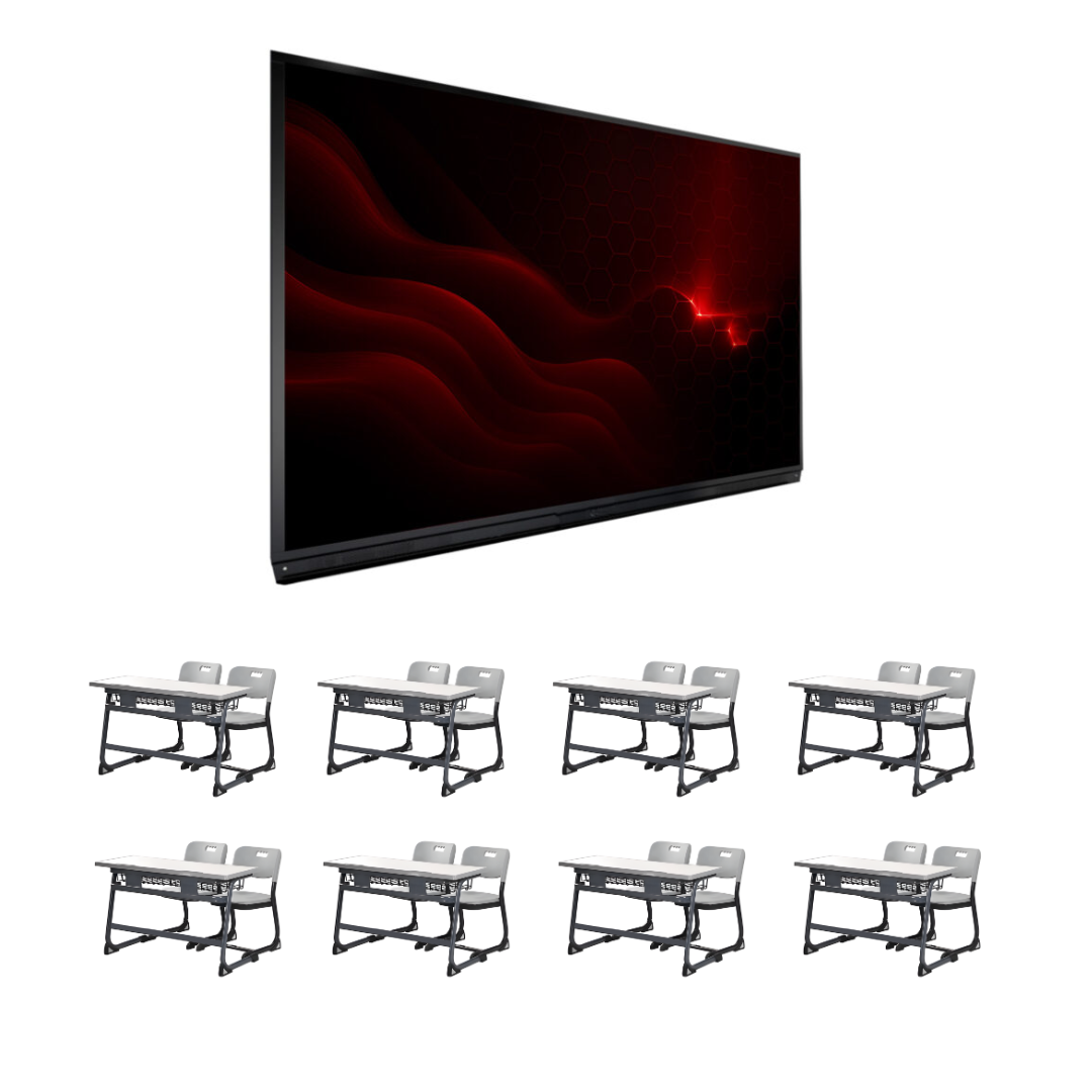 | Комплектация | Интерактивная панель 75 — 1 шт, Парта двухместная PL-Ch — 8, в комплекте со стульями — 16 |